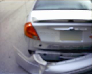 Here are some (extremely crappy) pictures of the damage. Blame my “1MP equivalent” digital “camera” that “takes” “pictures” like those “seen” below (click the pics for larger [debatable as to “better”] versions):