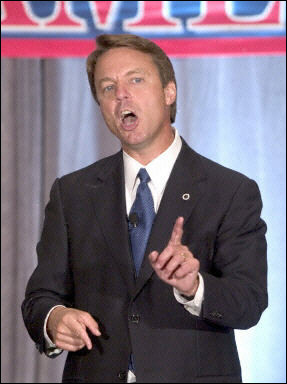 SEN. JOHN EDWARDS (D-NC) (clip of a speech): “I’d say if you live in the United States of America and you vote for George Bush, you’ve lost your mind.”